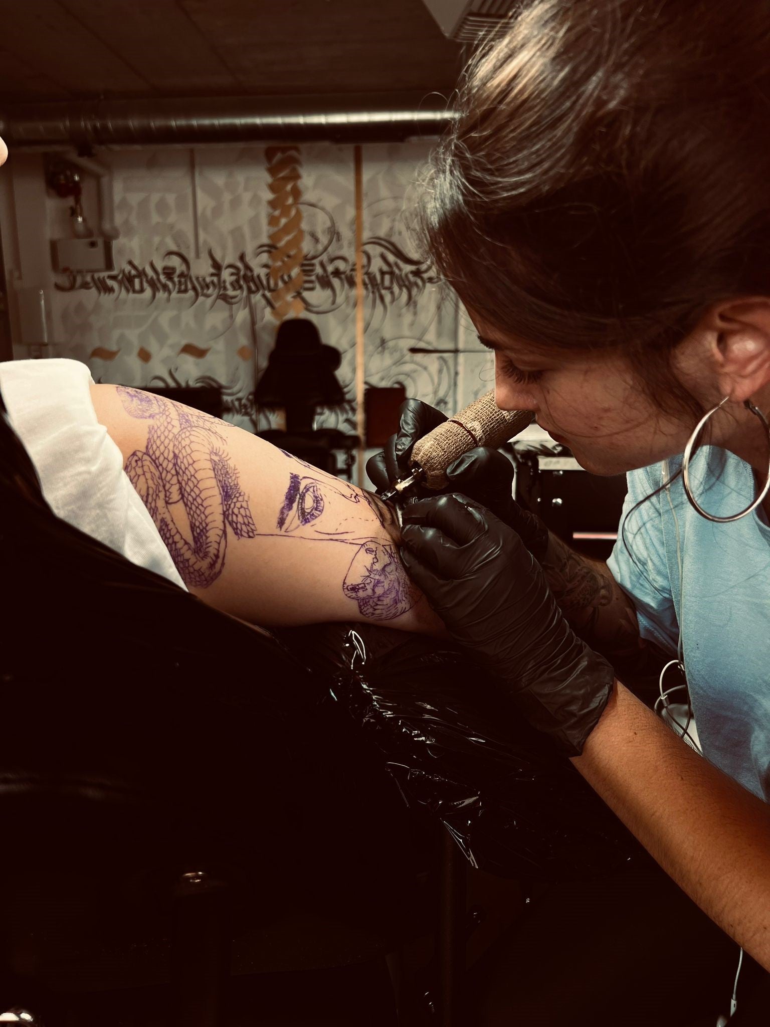 In meinen Adern pulsiert Kunst, die sich auf der Haut meiner geschätzten Kunden manifestiert. Als leidenschaftliche Tätowiererin hauche ich Ideen Leben ein, erschaffe lebendige Kunstwerke, die Geschichten erzählen und Emotionen einfangen. Durch jeden Nadelstich vereine ich Kreativität und Professionalität, um einzigartige Designs zu schaffen, die das Leben meiner Kunden bereichern.